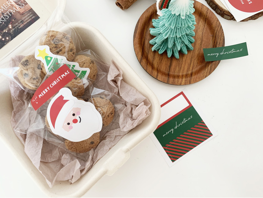 日式聖誕主題貼紙, 設計簡約百搭, 經典紅綠配色和條紋設計,色彩鮮明而時尚,將傳統與現代完美結合。