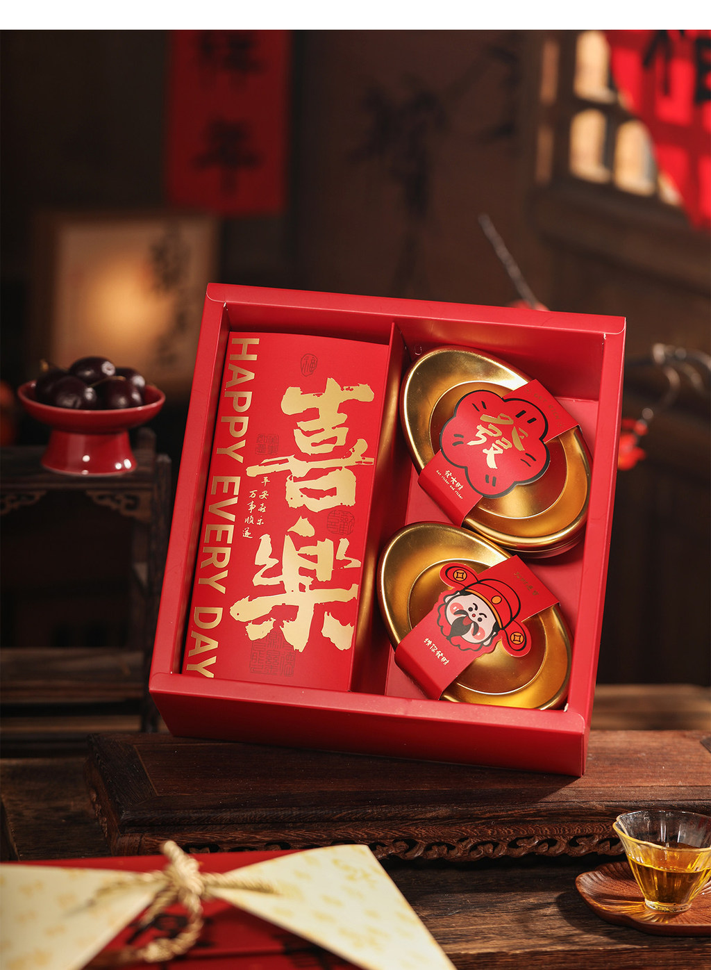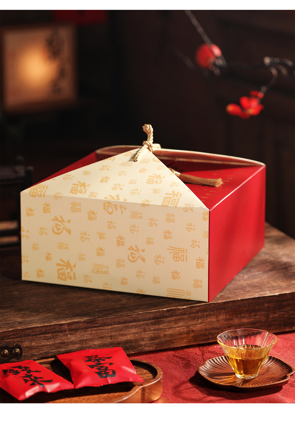 搭配喜氣紅色盒身與 流蘇提繩,