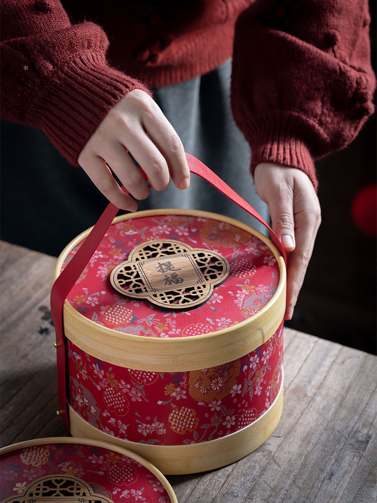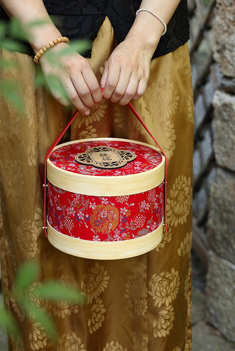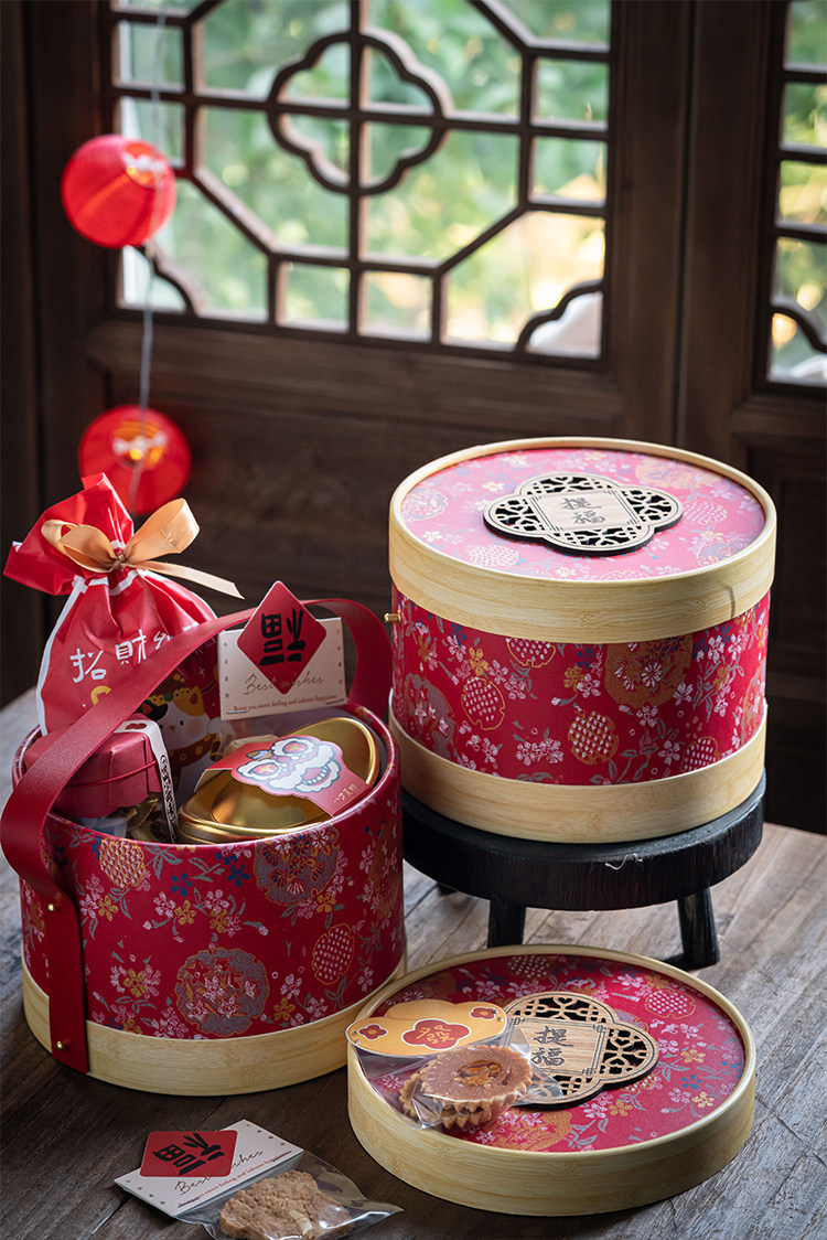 喜氣紅色圓筒搭配細緻花紋,